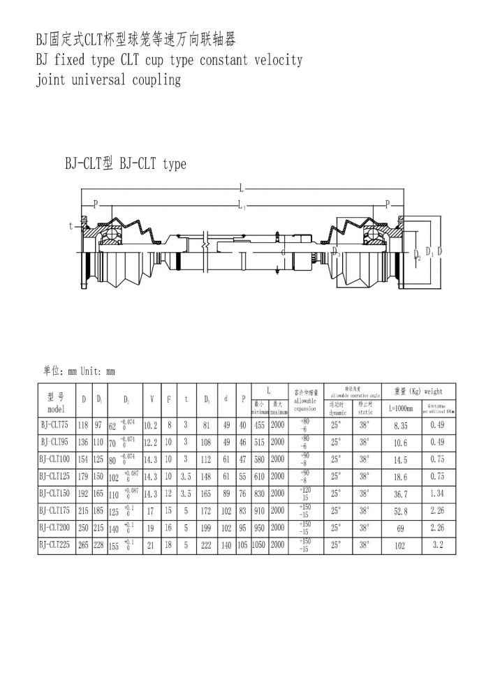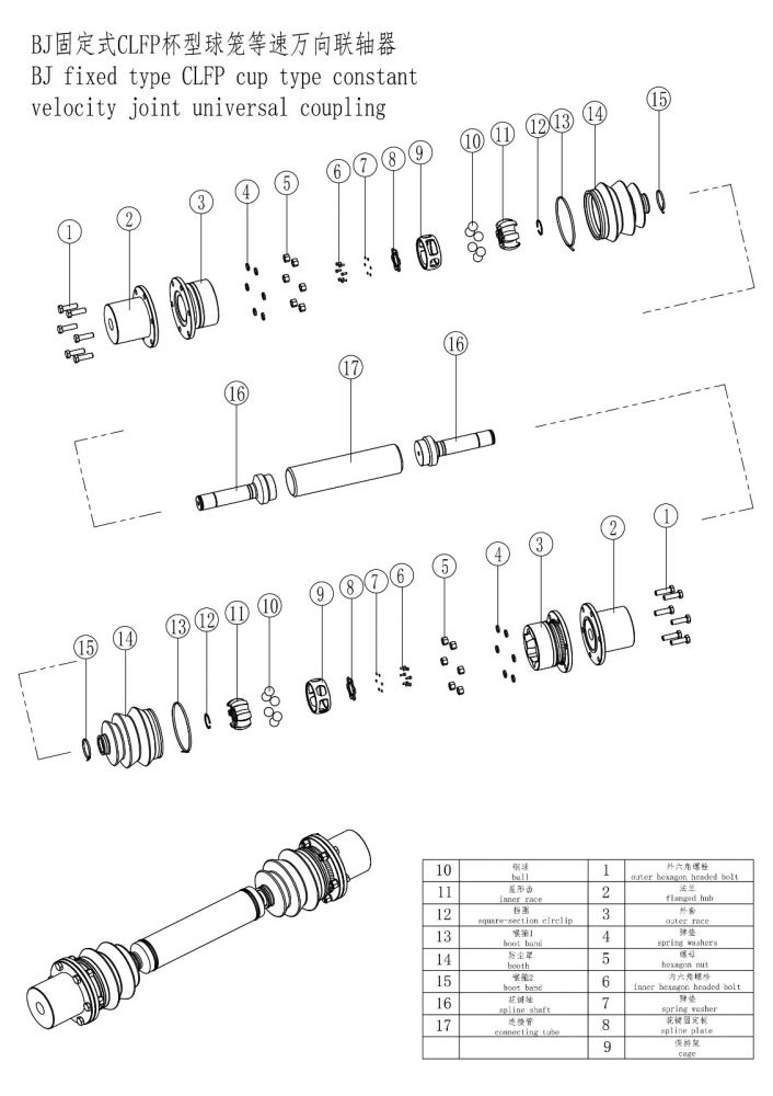 BJ杯型球籠等速萬向聯軸器
